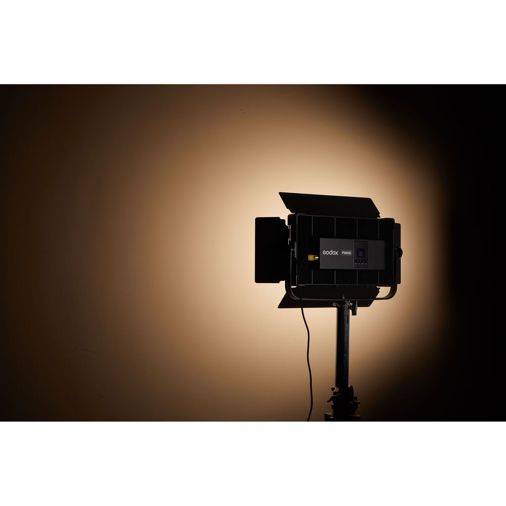Godox Knowled P200Bi je 200W dvoubarevný LED panel určený pro film, vysílání a profesionální práci s videem, který nabízí široký rozsah 3200–5600 K, výkon 4880 luxů při 3,3', tichý provoz bez ventilátoru, vestavěné čtyřlisté klapky a univerzální ovládání pomocí integrovaných ovládacích prvků, DMX nebo aplikace Godox Light.