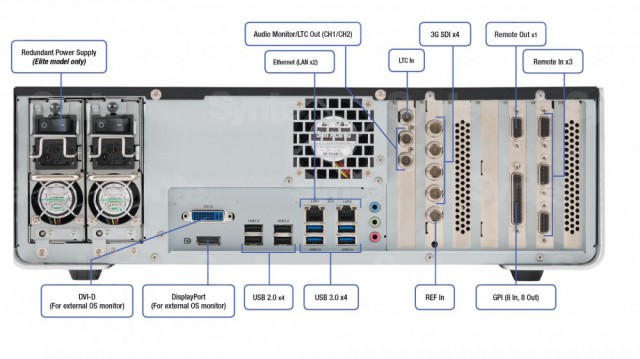 Varianta Elite nabízí navíc redundantní zdroj, čtečky SD, SD UHS-II, CF a SxS karet, extra slot pro 2,5““ SSD disk a možnost editovat aktuálně zaznamenávané video v aplikaci EDIUS.