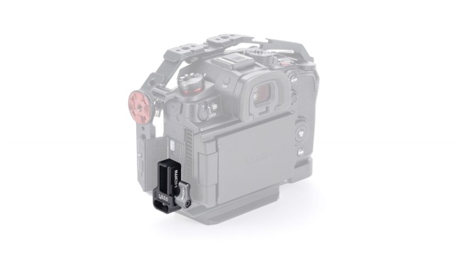Tato svorka HDMI se připojuje ke kleci Full Camera Cage pro Panasonic GH6 a umožňuje upevnit kabel HDMI Male na HDMI Female k systému fotoaparátu.