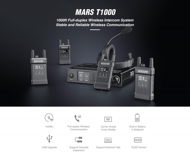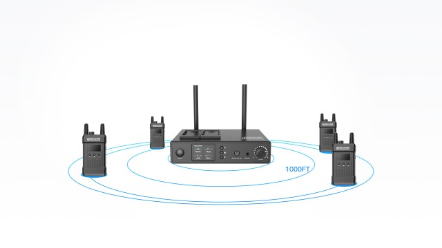Cenově dostupný, plně duplexní digitální bezdrátový komunikační systém s dosahem cca 300 m a výdrží akumulátorů (1600 mAh) až 8 hodin. Sada obsahuje jednu základní stanici, čtyři beltpacky, pět antén, stejný počet headsetů, kabeláž a nabíječku. Cenově dostupná alternativa k profesionálnímu systému Syscom…