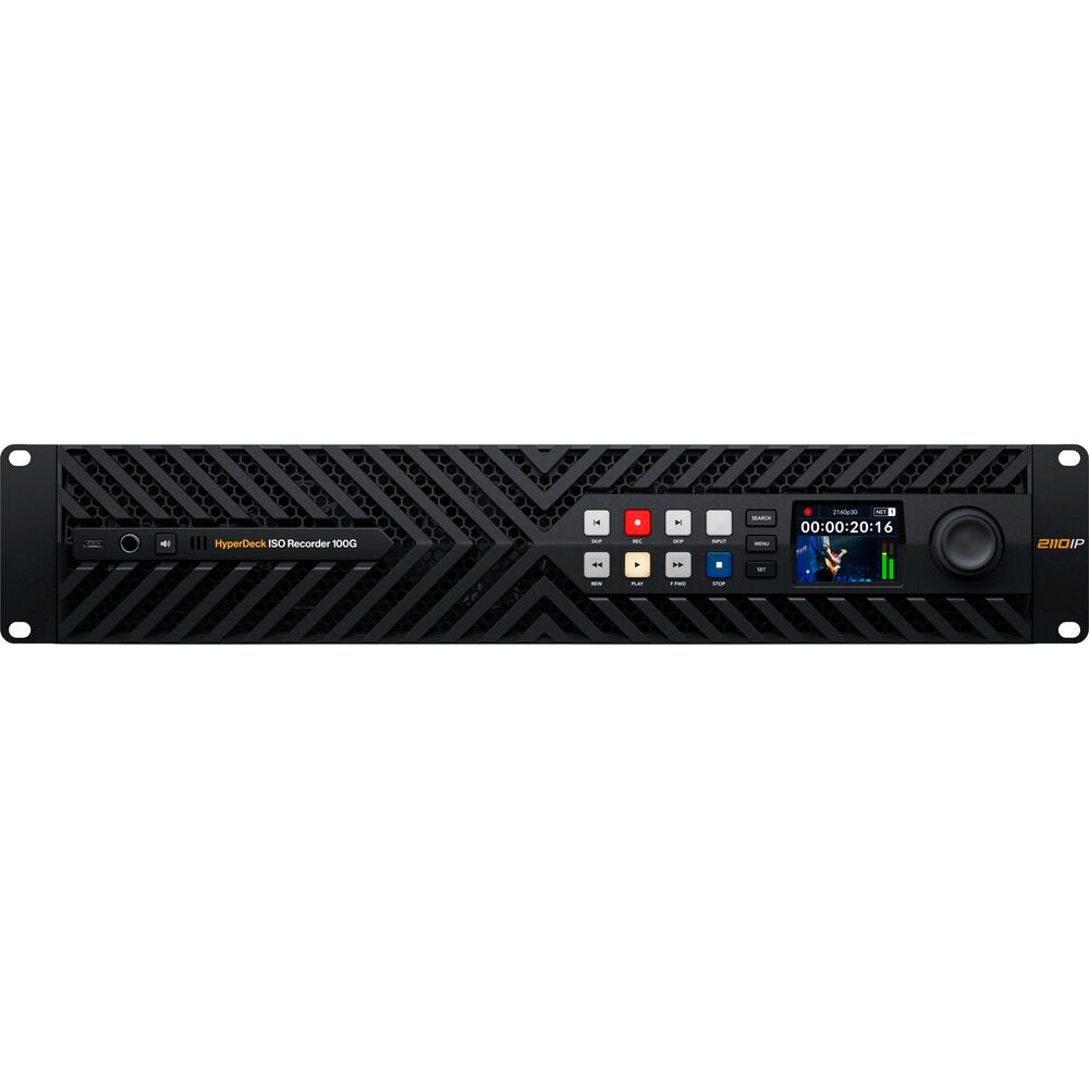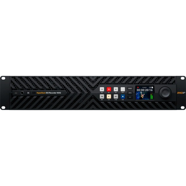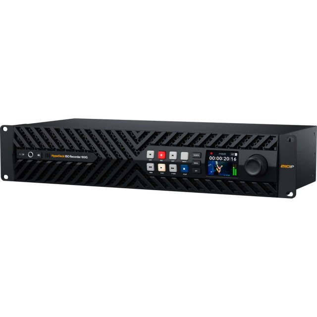 Blackmagic Design HyperDeck ISO Recorder 100G je 2RU SMPTE 2110 broadcast rekordér navržený pro vícekamerovou živou produkci a IP workflow s vysokou šířkou pásma. Umožňuje nahrávat až osm kanálů 10bitového 4:2:2 videa v rozlišení až DCI 4K60, přičemž každý vstup se ukládá jako samostatný soubor ProRes přímo na síťové úložiště přes duální 100GbE připojení. Redundance SMPTE ST 2022-7 zajišťuje nepřerušované nahrávání přes dvě síťové cesty, zatímco podpora 16 kanálů embedovaného zvuku na stream zachovává plnou vícekanálovou zvukovou integritu pro postprodukci.