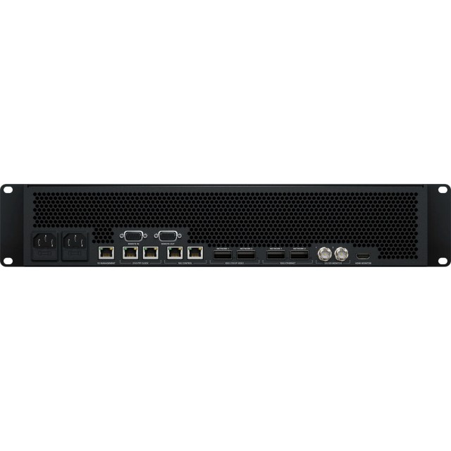 Soubory se ukládají v broadcast kvalitě ve formátu ProRes přímo na síťové úložiště pro velmi dlouhé nahrávací časy. Zařízení se připojuje přes 100G Ethernet SMPTE-2110, takže všech 8 video kanálů běží přes jedno připojení. Alternativně lze přidat Blackmagic SDI Expander 8x12G pro 12G-SDI. Můžete také přehrávat všech 8 kanálů, což je skvělé pro testování.
