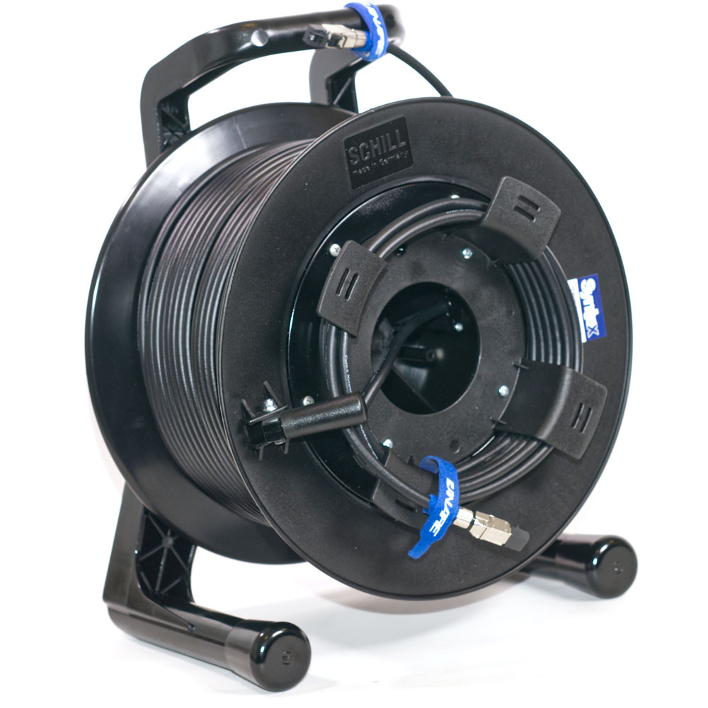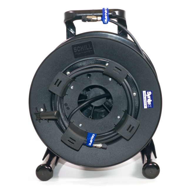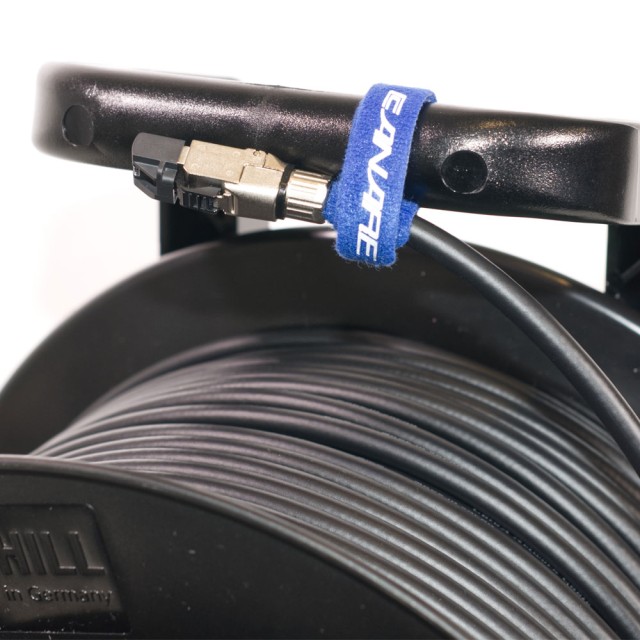 Ohebný kabel CAT6A STP 23AWG o vnějším průměru 8,6 mm se svorkami Telegartner RJ45, navinutý na kabelovém bubnu Schill GT 310.RM. Kabely Ethernet se používají nejen pro počítačové sítě, ale v poslední době také pro digitální audio sítě, síťové kamery, přenosy HDBaseT. Celková délka kabelu je uvedena včetně konektorů.