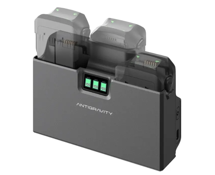Hub funguje také jako powerbanka, takže můžete nabíjet svůj telefon, dálkové ovládání nebo jiná zařízení USB-C v terénu. Je lehký a kompaktní (133 × 36,8 × 93 mm, 117 g), takže se snadno vejde do batohu nebo tašky na vybavení. Díky podpoře USB-C PD/PPS, postupnému nabíjení a schopnosti sloužit jako přenosný zdroj energie tento nabíjecí hub zjednodušuje správu baterií a zajišťuje maximální připravenost k letu pro váš dron Antigravity A1.