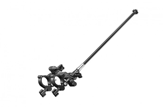 Držák Insta360 INST110-23 na řídítka je odolný držák z hliníkové slitiny určený k bezpečnému připevnění kamery na řídítka jízdního kola nebo motocyklu. Obsahuje 25cm tyč z uhlíkových vláken pro větší dosah, která zajišťuje stabilní natáčení při rychlostech až 60 km/h. Není určen pro použití v terénu.