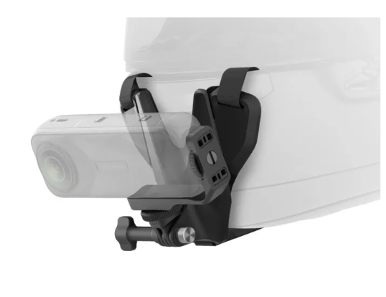 Držák je vybaven univerzálním 3kolíkovým konektorem, díky čemuž je kompatibilní se všemi kamerami Insta360, včetně modelů X5/X4, X3, GO 3S/GO 3, ONE R a ONE X2. Jeho nastavitelné popruhy a odnímatelná základna umožňují hladké uchycení na integrální, duální, modulární a terénní helmy. Integrovaný systém pro vedení kabelů a mikrofonu zajišťuje čisté a profesionální nastavení bez visících kabelů.