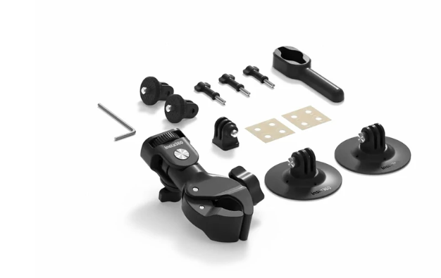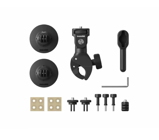 Insta360 INST110-33 Motorcycle Package V2 je kompletní sada pro upevnění kamery určená pro motocyklisty. Obsahuje několik možností upevnění na řídítka a helmu spolu s nezbytnými adaptéry a nástroji, které vám umožní bezpečně upevnit kameru Insta360 a s jistotou pořizovat dynamické záběry z jízdy.