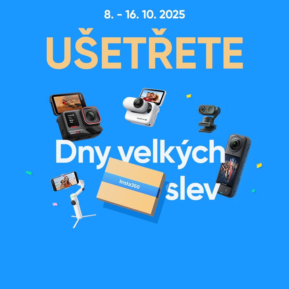 Máme pro vás skvělou zprávu – od 8. do 16. října 2025 probíhá limitovaná slevová akce na celou řadu vybraných produktů značky Insta360! Ať už natáčíte akční videa, streamujete, nebo hledáte tu správnou kompaktní kameru na výlety, teď je ideální čas rozšířit svou výbavu a přitom ušetřit.