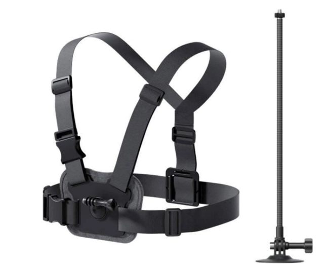 Hrudní popruh nabízí bezpečné, hands-free POV záběry pro dynamické snímky, zatímco sada pro upevnění na helmu s prodlužovací tyčí umožňuje flexibilní umístění kamery, což usnadňuje dosažení jedinečných úhlů a pořízení působivých záběrů. Tato sada, navržená pro lyžování, snowboarding a další zimní sporty, je lehká, odolná a navržená pro pohodlí, takže se můžete soustředit na vzrušení, aniž byste se museli starat o kameru.