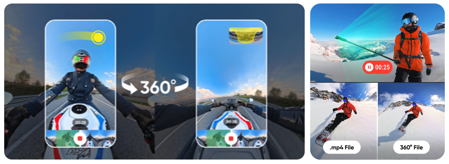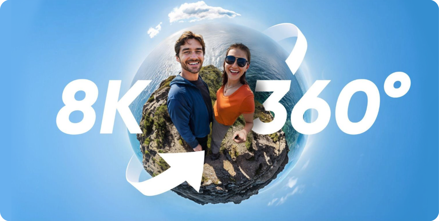 Aplikace pro snadné úpravy na profesionální úrovni podporovaná AI byla rovněž výrazně vylepšena. Přeskoč přerámování a ihned exportuj horké záběry! Vyber si pohled (dopředu nebo selfie) a je hotovo! Rychle, jednoduše a přímo k věci. Jedním kliknutím odstraníš efekt rybího oka u 360° záběrů a získáš tak přirozený pohled z jakéhokoli úhlu.