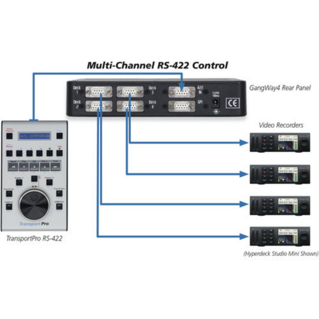 Připojte libovolnou řídicí jednotku RS-422, například VTC1, MCS6 nebo TransportPro, s jedinečnou možností vzdálené volby kanálu GangWay.