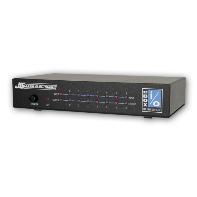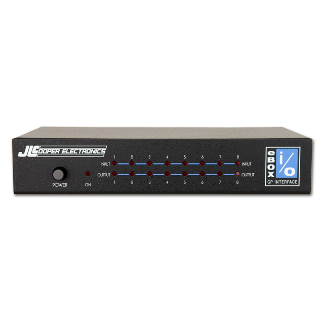 EBOX io společnosti JL Cooper je doplňkový produkt k univerzálnímu rozhraní eBOX, který převádí vstupy a výstupy GPI (General Purpose Interface) na zařízení eBOX na plně izolované vstupy a výstupy. Na jednotce je 8 opticky izolovaných vstupů a 8 reléově izolovaných vstupů.