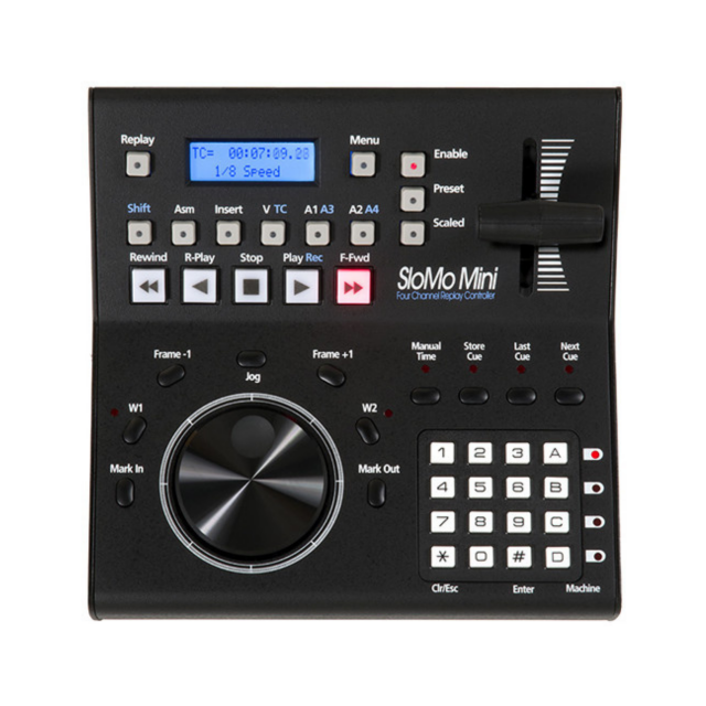 JLCooper SloMo Mini je ovladač pro okamžité přehrávání určený pro zpravodajství, sport, tabule a další scénáře zpomaleného střihu a je schopen propojení až se čtyřmi VTR dekami současně prostřednictvím připojení RS-422. Pomocí programovatelného jog kolečka nebo numerické klávesnice lze v reálném čase vybírat konkrétní záběry a následně s nimi manipulovat pomocí T-baru. Pomocí přiloženého čtyřcestného rozbočovače/napájecího kabelu je SloMo Mini kompatibilní s mnoha standardními VTR dekami a servery, které podporují řídicí protokol RS-422, včetně AJA KiPro, Blackmagic Design HyperDeck Studio a VideoDevices PIX 250i, 260i a 270i. Další rozšíření pomocí samostatně dostupných boxů Gangway 16 a Gangway 32 umožňuje současné ovládání mnohem více dekodérů než standardně dodávaný kabel.