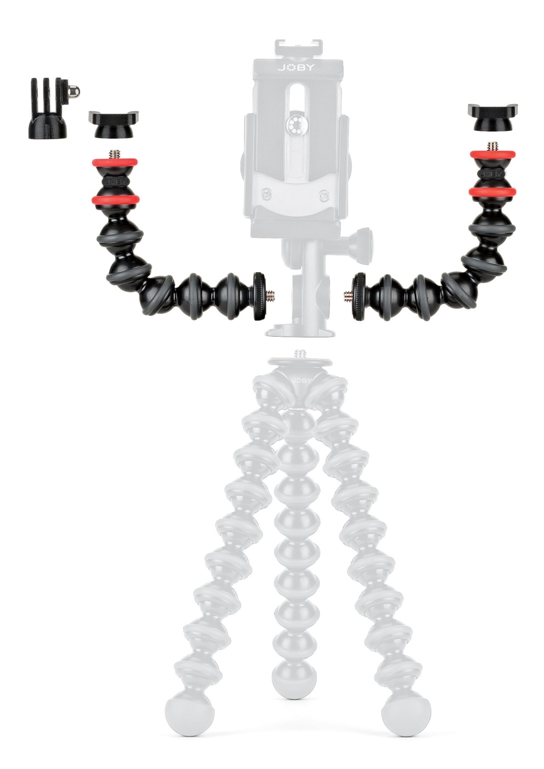 Joby GorillaPod Arm Kit (Black/Cha) jsou flexibilní ramena a držáky, pomocí kterých můžete upevnit ke GorillaPodu více příslušenství pro lepší záběry.