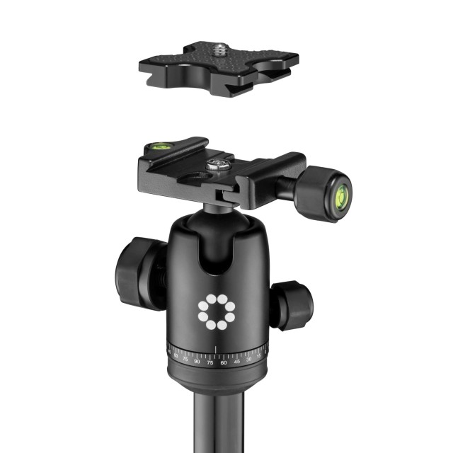 Rychloupínací destička kompatibilní s Arca-Swiss je vybavena stejnou technologií kovové destičky jako u Joby GorillaPod 5K kit. Součástí je také odnímatelný praktický háček pro připevnění batohu/tašky pro dosažení ještě věší stability.