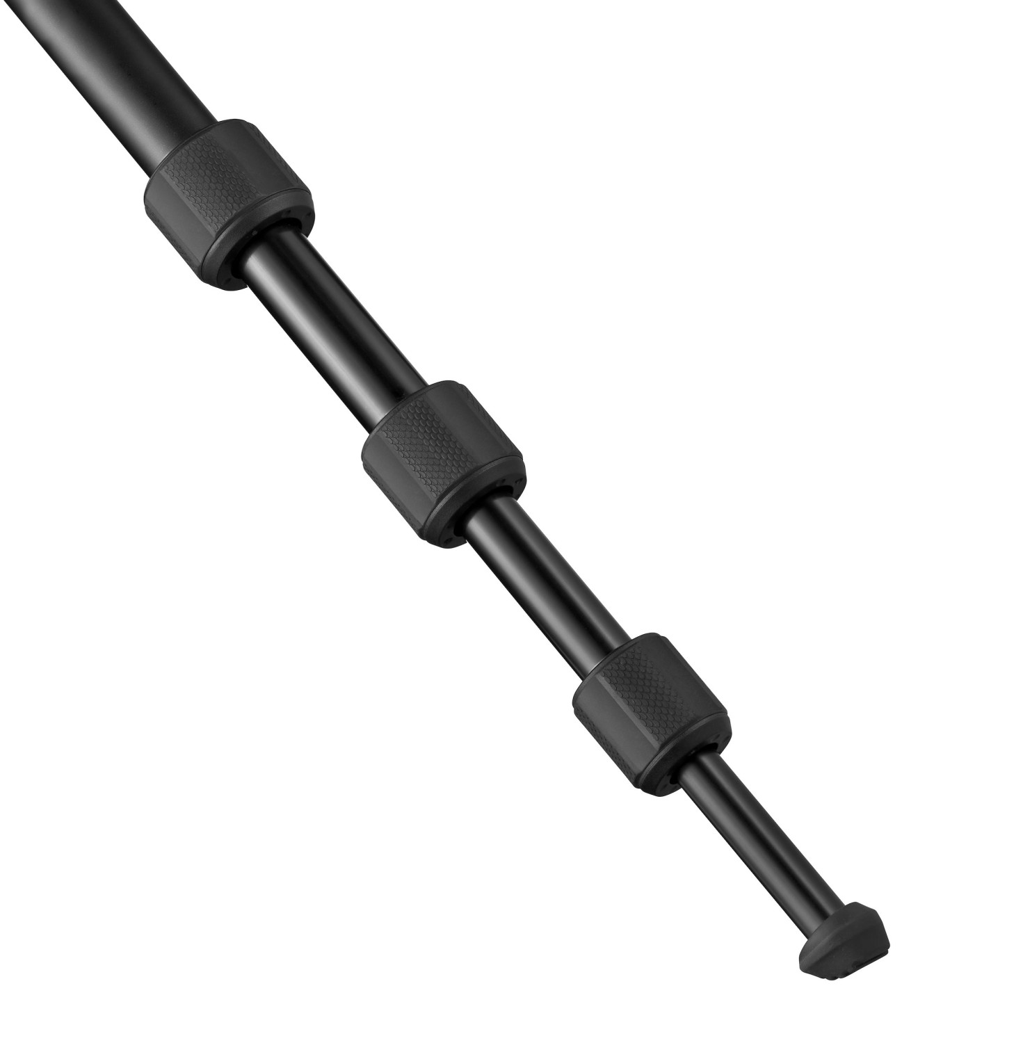 Tento robustní a pevný stativ je vyroben v kompaktních rozměrech z odolného hliníku s hmotností pouhých 1,69 kg a odolává tvrdým pracovním podmínkám.