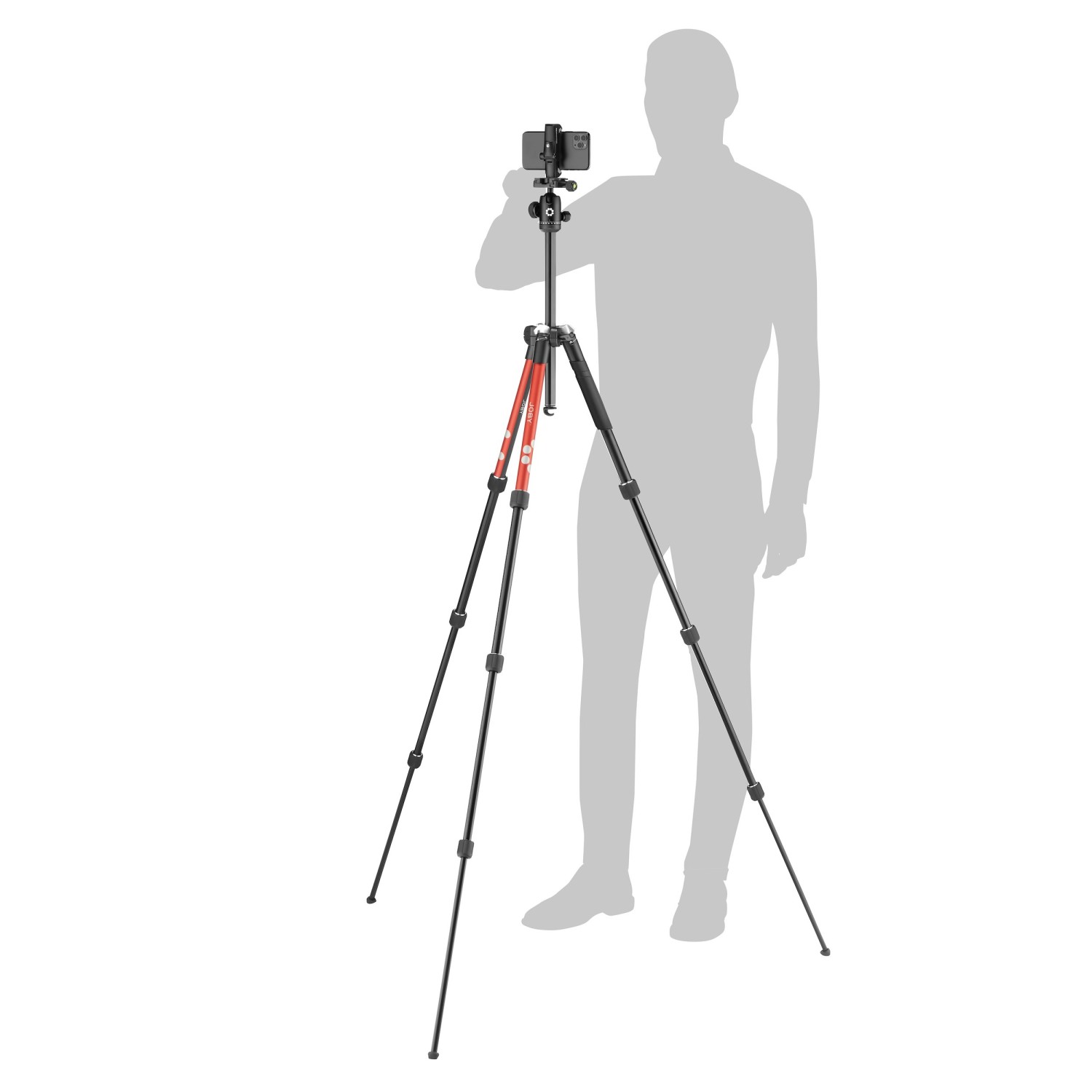 Pohodlný a přenosný, snadno použitelný Joby RangePod Smart Red je hliníkový stativ, který je dodáván s pouzdrem s ramenním popruhem pro přenos a dvěma 1/4" závity, které umožňují upevnění telefonu na šířku i na výšku (vhodné pro telefony o šířce 60–140 mm).