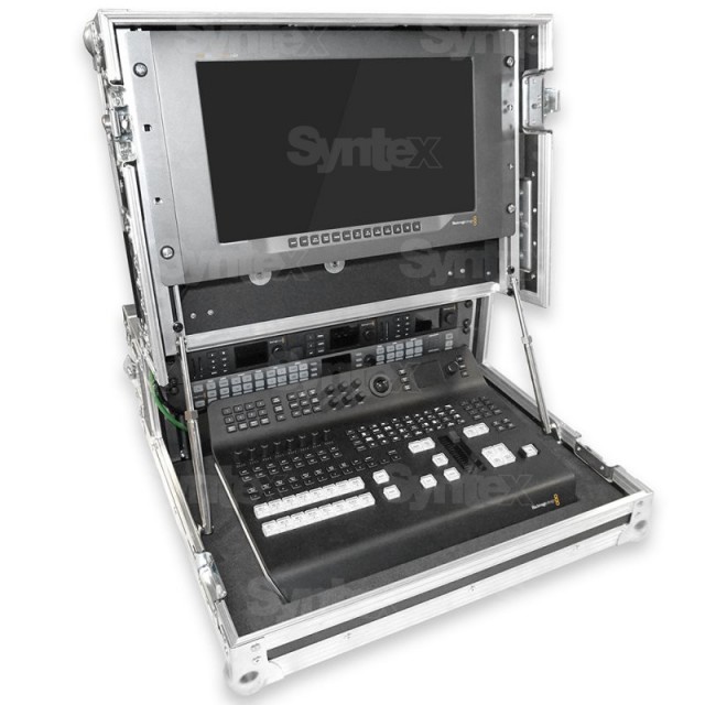 Speciální produkční kufr pro režii ATEM Television Studio Pro (HD nebo 4K), dovolující přepravovat režii spolu s monitorem a dvěma 19“ 1U zařízeními v zapojeném stavu.
