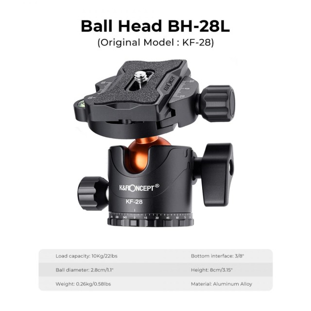 - * 【360° PANORAMA】Hmotnost stativu je 1,5 kg. Velká 28mm kovová kulová hlava poskytuje nosnost 10 kg, lze ji otáčet o 360°, což pomáhá rozšířit rozsah činnosti DSLR fotoaparátu při panoramatickém snímání.