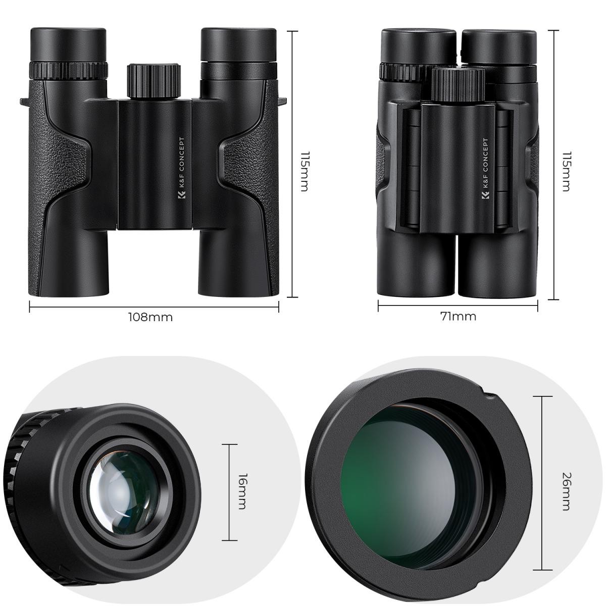 Dalekohled K&F 10x25 HD nabízí vysoké rozlišení v kompaktním a lehkém provedení. Díky hranolům BaK4, vícevrstvým čočkám FMC s 99% propustností světla a vodotěsnému tělu s krytím IP65 poskytuje tento dalekohled jasný a živý obraz pro cestování, pozorování přírody a outdoorové aktivity, přičemž zůstává přenosný a ergonomický.