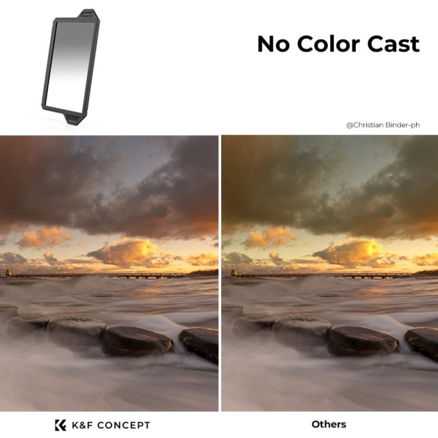 Čtvercový filtr K&F Concept 100×150×2 mm Hard GND8 se vyznačuje oceněnou ochranou objektivu, prémiovým optickým sklem AGC s 36vrstvým povlakem a je ideální pro vyvážení jasné oblohy a tmavšího popředí. Součástí balení je ochranný rámeček a pouzdro z PU kůže.