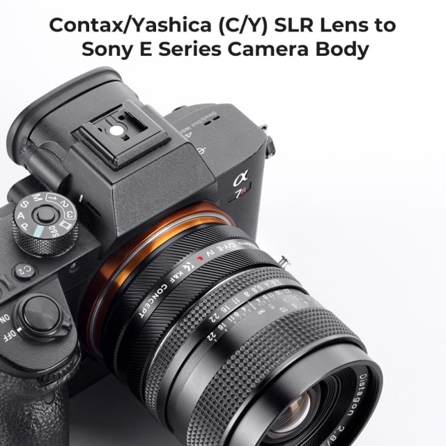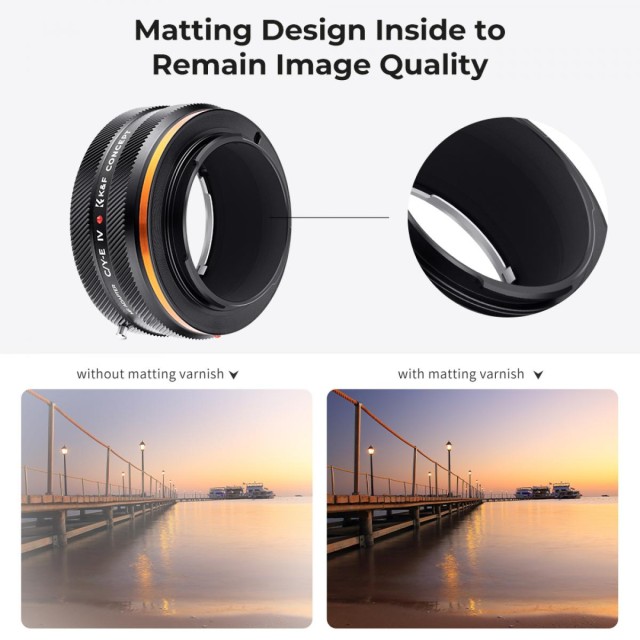 Vysoce přesné zpracování – s tímto adaptérem lze objektiv a fotoaparát pevně a hladce spojit pomocí bajonetu, což umožňuje nastavitelné ostření objektivu Contax/Yashica (C/Y) na vašem fotoaparátu se Sony E-mountem.