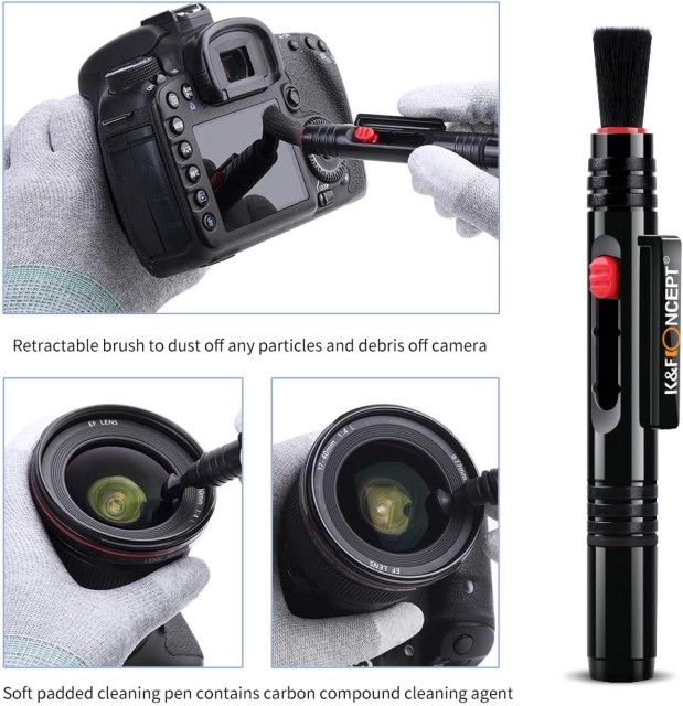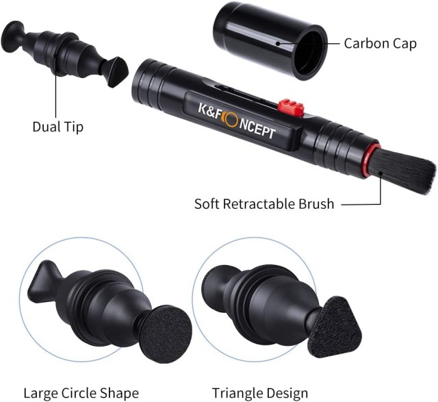 Čistící utěrky z mikrovlákna + pero na objektivy : Měkké štětiny, bez statické elektřiny, nedochází k poškození zařízení. Účinně čistí velké částice prachu pro odstranění prachu v trupu a štěrbinách; čisticí pero s výsuvným měkkým kartáčkem na jednom konci a měkkou čisticí podložkou na druhém konci pro odstraňování otisků prstů a šmouh.