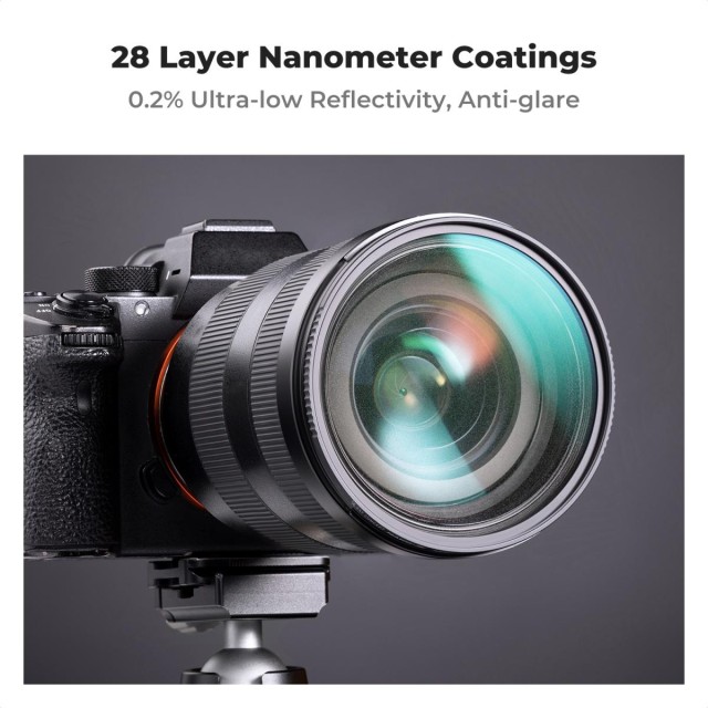 Po optickém broušení je skleněný filtr opatřen high-tech vrstvou, která je voděodolná, odolná proti poškrábání a odpuzuje mastnotu. Má vysokou odolnost proti poškození bez vlivu na kvalitu obrazu. I při znečištění kapkami vody nebo olejem lze filtr snadno vyčistit.