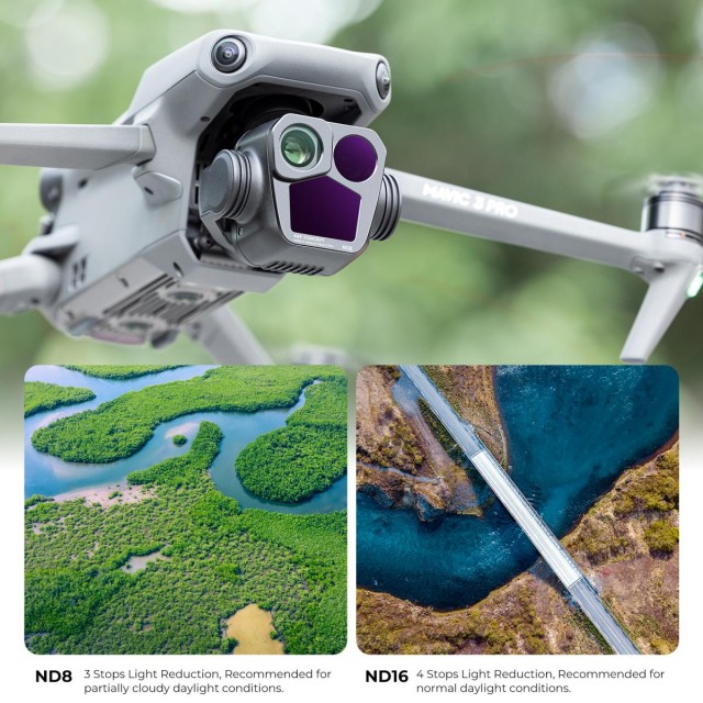 - * 【Lehké a bezpečné pro gimbal】CPL: 6,9 g; ND: 5,4 g. Lehká konstrukce rámečku K&F Concept zajišťuje, že každý rámeček filtru projde přísným testem nízké hmotnosti, aniž by měl nepříznivý vliv na kardanový stabilizátor DJI Mavic 3 Pro.