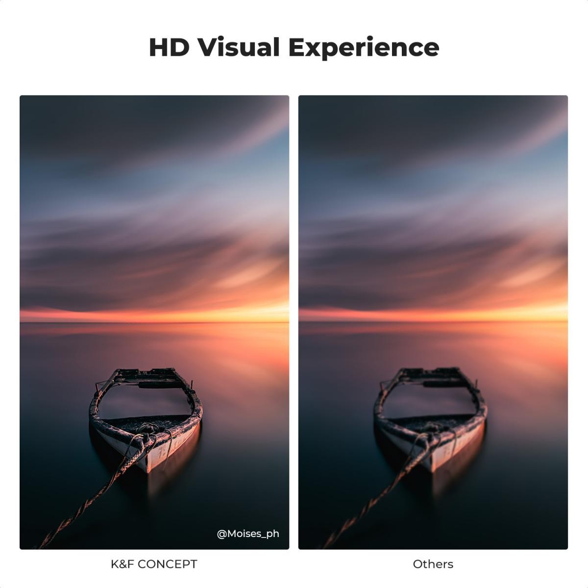 Tyto filtry jsou vyrobeny z importovaného optického skla AGC s vysokým rozlišením a 28vrstvým vícevrstvým povlakem, jsou vodotěsné, odolné proti poškrábání, odolné proti oleji a zachovávají věrnost barev. Ultratenký CNC frézovaný rámeček (1,9–3,33 mm) zabraňuje vinětaci na širokoúhlých objektivech a zároveň zajišťuje snadnou instalaci a demontáž. Díky přiloženému ochrannému pouzdru je sada přenosná a ideální pro fotografování krajiny, filmovou fotografii a cestování.