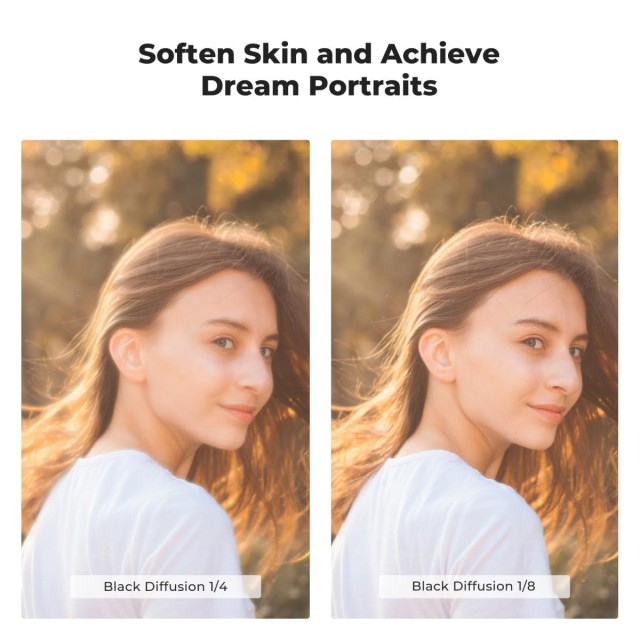 Profesionální filtr pro portrétní fotografii – Filtr dokáže zjemnit vrásky a pihy na pleti, čímž ji učiní jemnější a atraktivnější, s výsledkem snového filmového vzhledu.