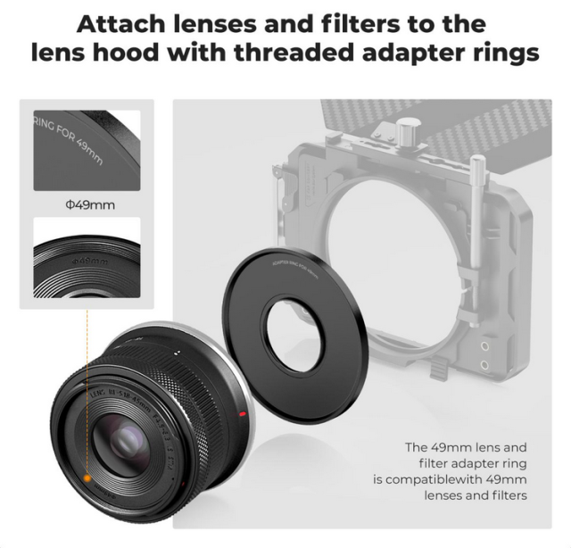 K&F 49MM Matte Box Adapter Ring: Přesně vyrobený hliníkový adaptér pro stabilní a bezproblémovou integraci s matnými boxy K&F Concept.