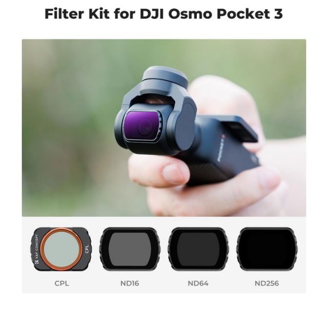 Sada filtrů K&F 4ks pro DJI Osmo Pocket 3 je navržena tak, aby vylepšila vaše fotografické a videografické zážitky pomocí filtrů s vysokým rozlišením. Tato sada obsahuje filtry CPL, ND16, ND64 a ND256, které se vyznačují rychlou magnetickou instalací a plnou kompatibilitou s gimbalem. Tyto filtry jsou ideální pro různé podmínky jasného slunečního světla a každodenní natáčení vlogů a poskytují vyváženou expozici, lepší barvy a kontrast.
