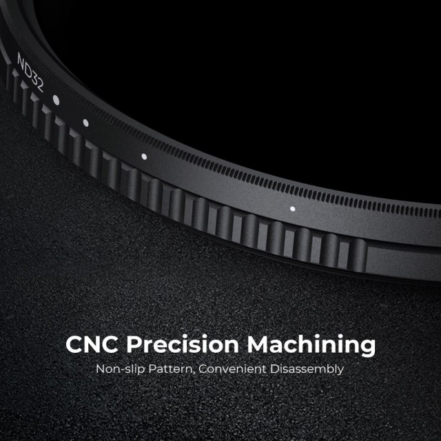 Variabilní filtr K&F Concept ND2-ND32 je určen pro techniky dlouhých expozic a rozmazání pohybu při měnícím se světle. Snižuje přívod světla od 1 do 5 stupňů bez vlivu na vyvážení barev, vhodný pro polojasno nebo mírné sluneční podmínky. Tento variabilní filtr ND2-ND32 z řady K&F Concept Nano-Dazzle je vyroben z optického skla HD AGC, celkem 24 vícevrstvých vrstev pomáhá odpuzovat vodu a prach, čímž účinně snižuje odraz od samotného filtru a odlesky. povrch čočky je zoxidován a opískován, aby se účinně zabránilo pronikání rozptýleného světla a zpomalil odraz kovového povrchu.