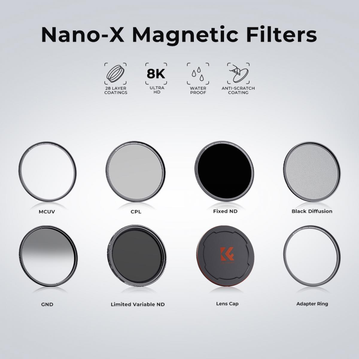 Magnetický filtr K&F 55MM NANO-X CPL zvyšuje čistotu a sytost barev a zároveň snižuje odrazy. Vyznačuje se rychlou magnetickou instalací, ultratenkým CNC hliníkovým rámem a odolným vodotěsným optickým sklem s povrchovou úpravou proti poškrábání a zeleným povlakem.