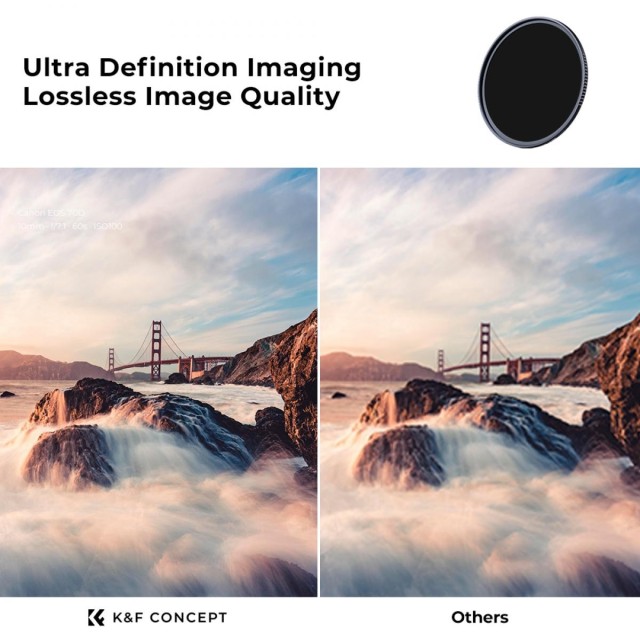 ND filtr (filtr neutrální hustoty) slouží k zamezení přeexponování při fotografování v exteriéru, k regulaci světla vstupujícího do objektivu i při nízké rychlosti závěrky, aby bylo možné zaznamenat rozmazaný pohyb objektu, a doporučujeme jej používat při fotografování krajiny. Sada filtrů ND obsahuje filtr ND4+ND8+ ND64+ ND1000 (každý 1 kus) a 1 pouzdro na filtr.