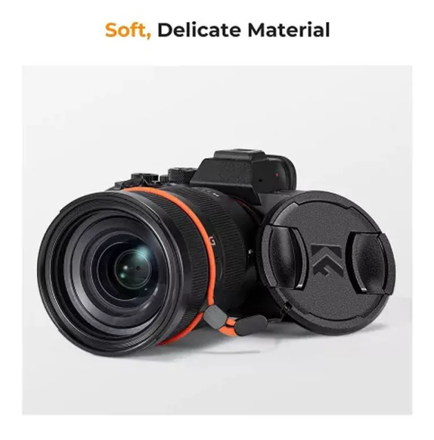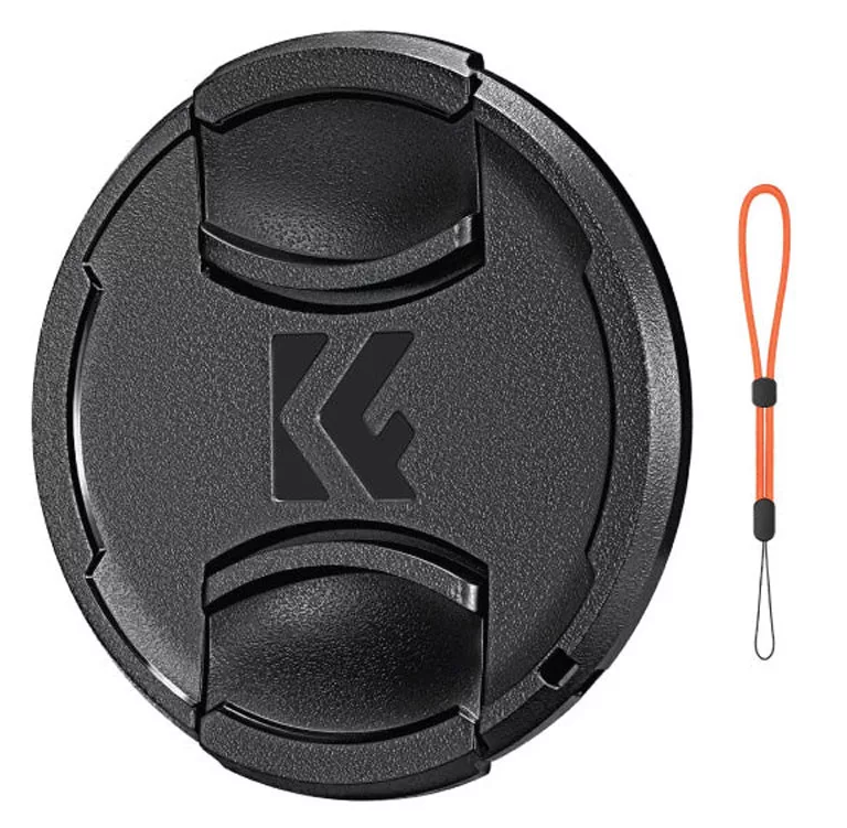 K&F Concept 58mm krytka objektivu s logem KF a šňůrkou proti ztrátě: Snap-on design s centrálním upínáním, bez pružiny, z ABS, jednotlivě balené v OPP obalu pro ochranu před prachem a poškrábáním.