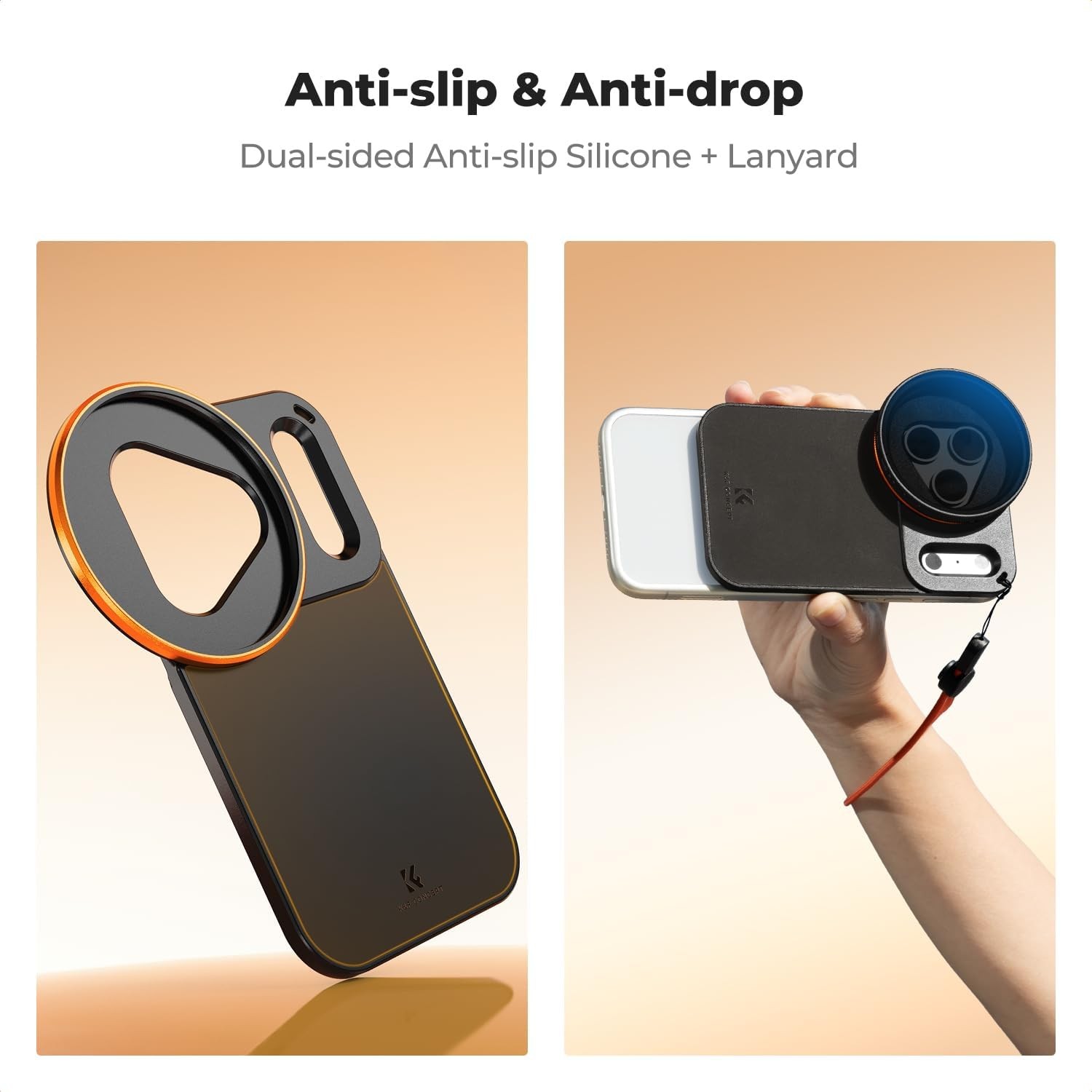 Vylepšete fotografování s iPhone 17 Pro Max pomocí oboustranného magnetického držáku filtru K&F 58 mm Screw-In Magsafe. Je speciálně navržen pro iPhone 17 Pro Max, jeho trojúhelníkový výřez pro objektiv a obdélníkový otvor Deco se perfektně přizpůsobí modulu objektivu, blesku a anténám, čímž zabraňují úniku světla a rušení signálu a zároveň zachovávají plnou funkčnost fotoaparátu.