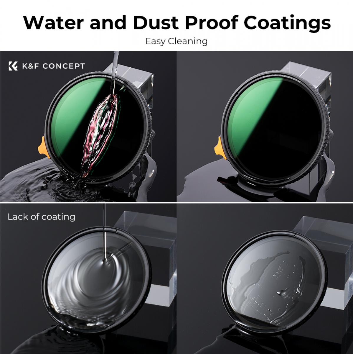 Jako variabilní ND filtr nabízí 3–7 stupňů nastavitelné redukce světla, což vám umožňuje přesné ovládání expozice v jasném prostředí. Vestavěná omezovací struktura zabraňuje nadměrnému otáčení a eliminuje běžný problém „X“ kříže, který je typický pro variabilní ND filtry.