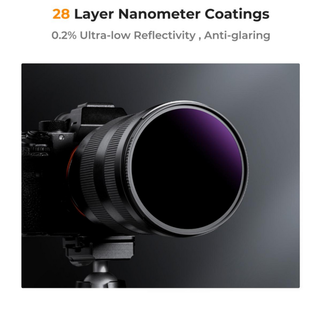 Filtr K&F 72MM Nano-X Ultra ND1000000 je určen pro specializované fotografické potřeby, včetně fotografování slunce a snímků s dlouhou expozicí. Tento filtr nabízí působivou redukci světla o 20 stupňů, takže je ideální pro zachycení složitých detailů slunce nebo vytvoření dramatických efektů rozmazání pohybu. Je vyroben z vysoce kvalitního optického skla a opatřen 28vrstvou nanovrstvou, takže poskytuje vynikající ochranu proti poškrábání, vodě, oleji a prachu a zároveň minimalizuje odrazy a duchy. Vroubkovaný kroužek filtru zajišťuje bezpečné uchopení a jeho velmi tenký a lehký hliníkový rám pomáhá předcházet vinětaci. Je kompatibilní se všemi objektivy s předním závitem 72 mm.