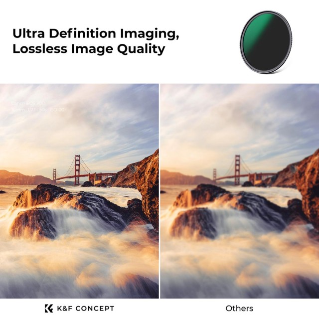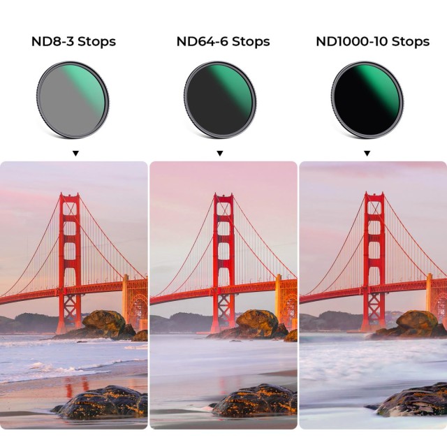 Sada profesionálních ND filtrů K&F 82MM 3-piece Professional ND Filter Kit obsahuje filtry ND8, ND64 a ND1000 vyrobené z prvotřídního japonského optického skla s pokročilou 24vrstvou nano povrchovou úpravou, která zajišťuje vynikající barevnou neutralitu a výkon při dlouhé expozici. Součástí balení je vodotěsné pouzdro a tři samostatně balené čisticí utěrky.