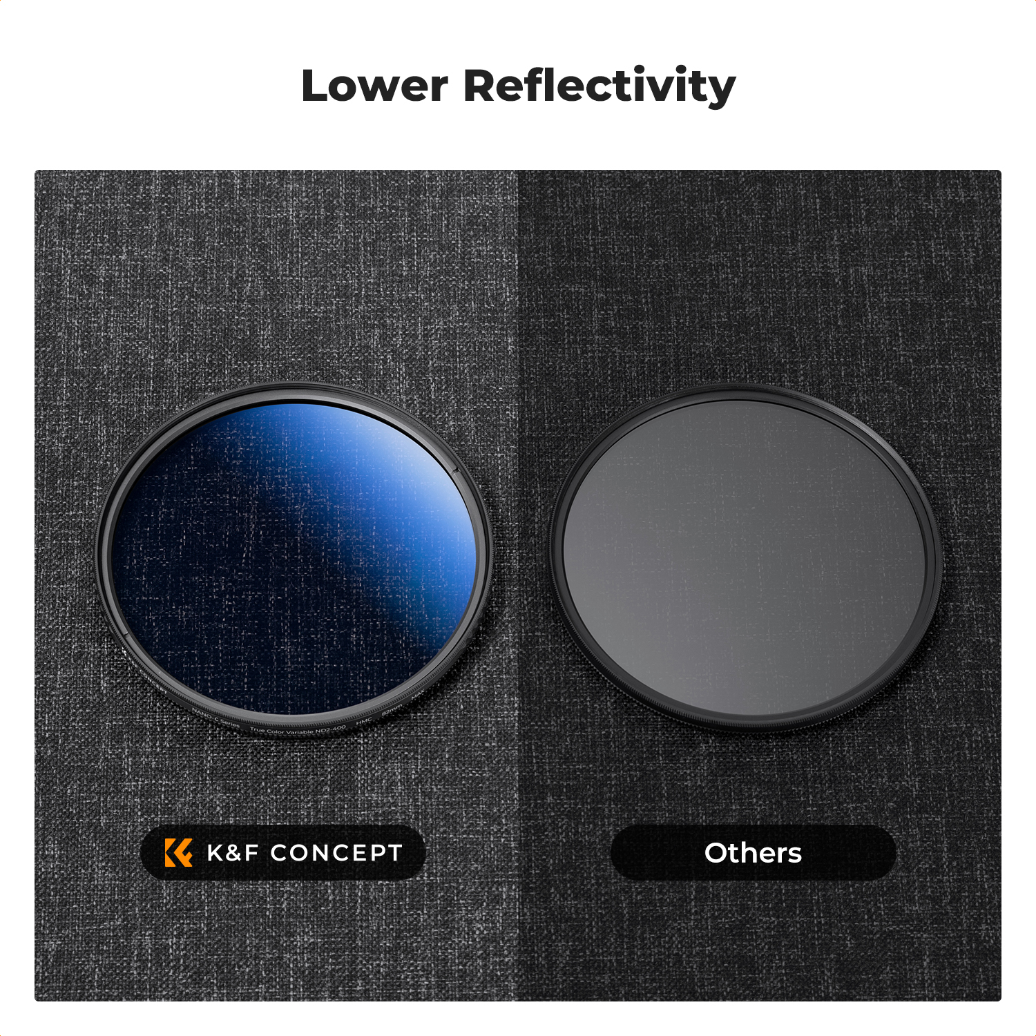 Dosáhněte přesné kontroly světla pomocí 82mm True Color variabilního ND filtru ND2-ND400 od společnosti K&F Concept, který se vyznačuje ultratenkým optickým sklem, věrným podáním barev a pokročilými antireflexními vrstvami.