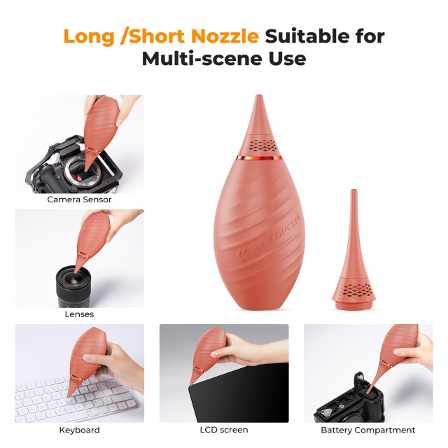 K&F Advanced Silicone Air Blower je všestranný a stylový čisticí nástroj určený pro fotografy a nadšence do gadgetů. Jeho inovativní systém dvou trysek zajišťuje přesné proudění vzduchu a účinně odstraňuje prach z choulostivých zařízení, včetně objektivů fotoaparátů, snímačů, klávesnic a dalších.