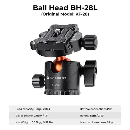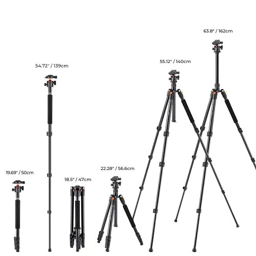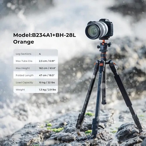 K&F Concept B234A1+BH-28L je robustní, ale přenosný teleskopický stativ vyrobený z vojenské slitiny hořčíku a hliníku, určený pro fotografy, kteří vyžadují pevnost, stabilitu a flexibilitu. Díky vysoce zatížitelné 28mm kulové hlavě a odnímatelnému monopodu je ideální pro cestovní, outdoorovou, makro a portrétní fotografii.