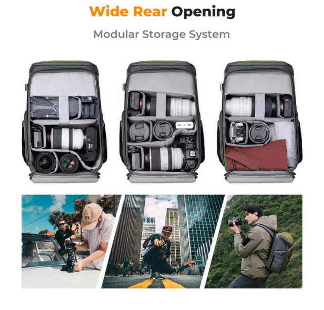 Batoh K&F 25L Nature Wander 01 (zelený) je určen pro fotografy, kteří potřebují všestrannost, stabilitu a snadný přístup na cestách. Batoh s jedinečnou konstrukcí Magic Bin umožňuje nastavit poměr vnitřního prostoru mezi 5:5 a 2:8 jednoduchým posunutím nahoru nebo dolů, čímž se přizpůsobí vašim specifickým potřebám na uložení vybavení. Díky tomu je ideální pro fotografování v přírodě, městskou pouliční fotografii, venkovní portréty a fotografování VIOG.