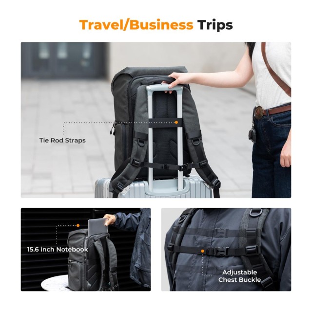 * 【Ultimátní pohodlí a cestovní komfort】Nastavitelná hrudní spona spolu s odvětrávanými, rychleschnoucími síťovanými polstrovanými zády a ramenními popruhy pomáhá vyrovnávat a snižovat tlak zátěže na ramena, záda a pas. I plně naložený batoh na fotoaparát nabízí maximální pohodlí. Je také vybaven popruhem na kolečkách pro připevnění k vašemu kufru.
