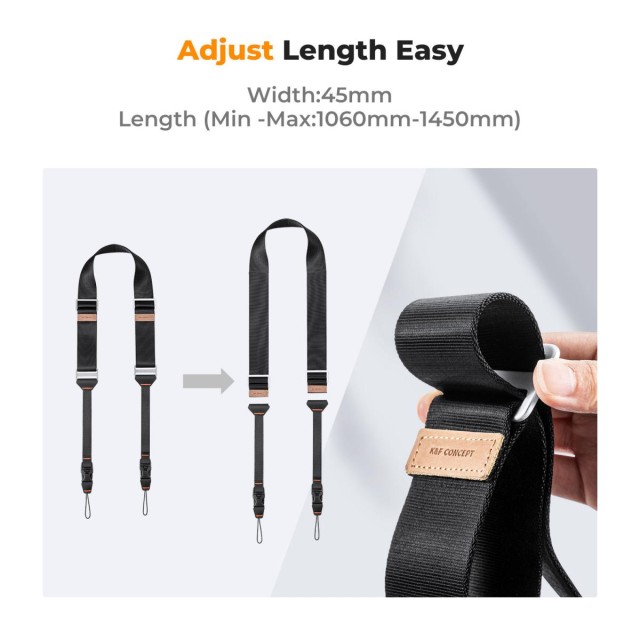 K&F Concept 45mm popruh na krk fotoaparátu s rychloupínákem pro fotografy, nastavitelný popruh přes rameno fotoaparátu kompatibilní s digitální zrcadlovkou Nikon Canon Sony Olympus, černý. Bezpečnostní karabina UTX chrání fotoaparát před rizikem náhodného pádu a zvyšuje bezpečnost