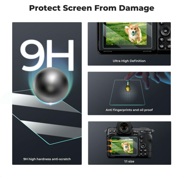Tato sada ochranných krytů obrazovky fotoaparátu K&F je určena pro fotoaparáty Nikon Z9 a Z8 a obsahuje 3 ochranné kryty obrazovky, 3 horní ochranné kryty obrazovky a hadřík na vysávání.