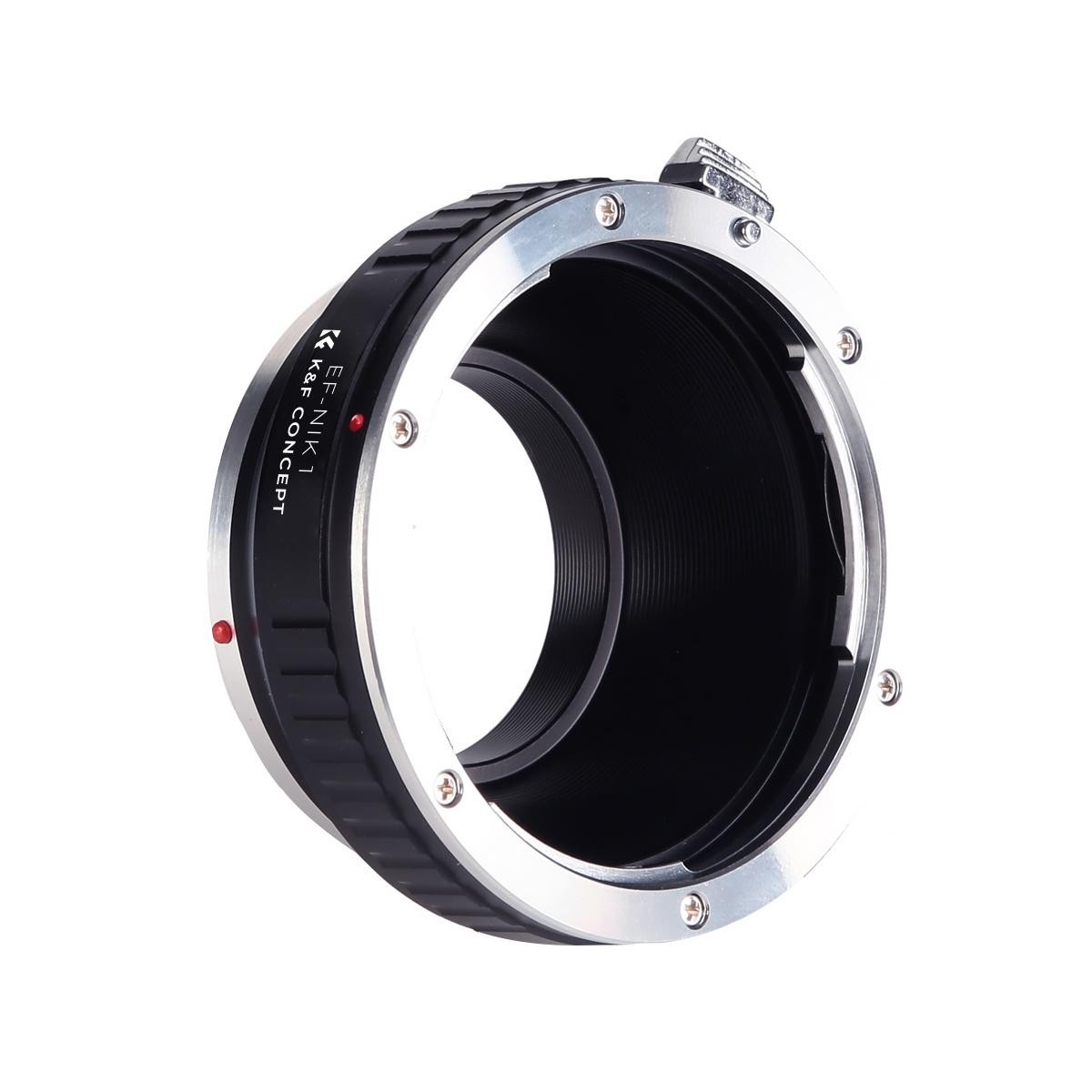 Adaptér K&F Canon EF na Nikon 1 umožňuje použití objektivů Canon EF/EF-S na bezzrcadlovkách Nikon 1. Vyznačuje se odolnou celokovovou konstrukcí, manuálním ovládáním a možností zaostření na nekonečno.