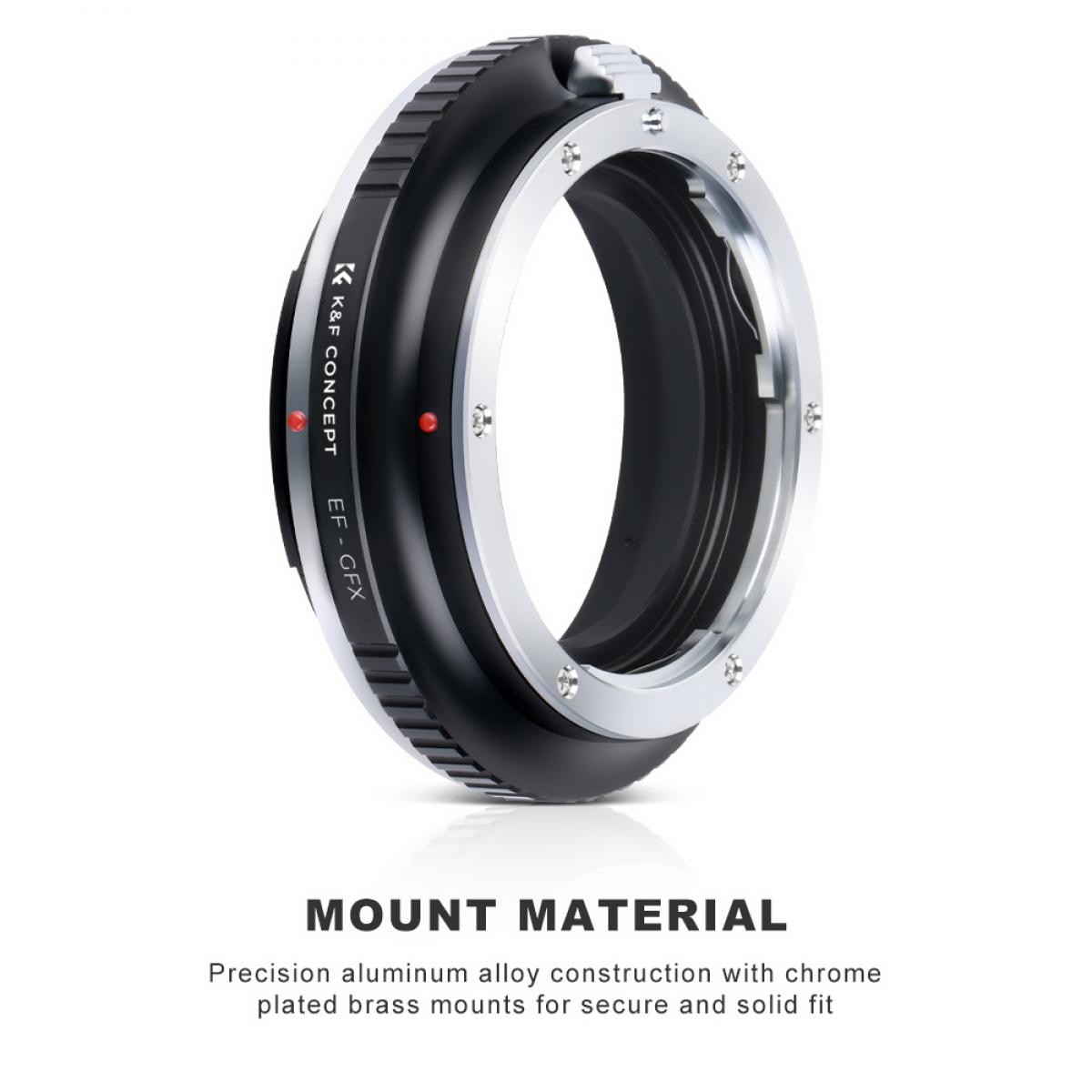 Adaptér K&F Canon EOS EF Lenses to Fuji GFX Mount Camera Adapter umožňuje fotografům připojit objektivy Canon EF k středoformátovým fotoaparátům Fujifilm GFX. Tento adaptér je ideální pro uživatele, kteří chtějí využít širokou škálu objektivů Canon EF a zároveň si užít velký snímač a vysokou kvalitu obrazu systému GFX.